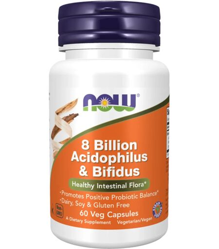 Now Foods ® 8 billion acidophilus & bifidus - 60 Pflanzliche Kapseln - Bakterienkulturen - Pflanzliche Kapseln - 60 Servings