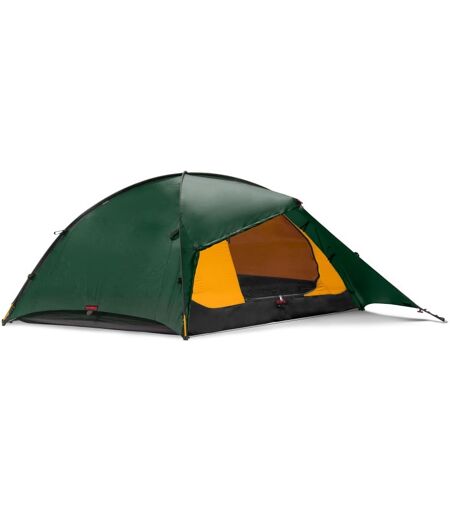 Hilleberg Rogen 3-Personen-Zelt Das Hilleberg Rogen 3 Zelt scheint auf den ersten Blick mit rund 2,5 kg nicht besonders leicht zu sein, rechnet man das Gewicht allerdings auf die 3 Personen um, die darin bequem übernachten können, ist es mehr als rucksacktauglich. Mit 170 cm Breite am Kopfende und einer bequemen Sitzhöhe von 105 cm ist es auch für 2 Personen eine komfortable Option. Und auch die Länge von 230 cm ist so großzügig geschnitten, dass unterhalb oder oberhalb der Isomatte noch weitere Ausrüstung verstaut werden kann. Der Aufbau geht schnell und einfach von der Hand wie es bei jedem Hilleberg Zelt der Fall ist. Innen- und Außenzelt sind beim Hilleberg Rogen 3 Zelt schon miteinander verbunden und werden mit zwei gekreuzten Gestängebögen und einer Querstange in Form gebracht. Die passenden, leichten Heringe sind auch schon enthalten sowie ein Ersatzsegment und eine Reparaturhülse. Das Hilleberg Rogen 3 Zelt gehört zur Yellow Label Serie des Herstellers und zeichnet sich dadurch durch sein recht leichtes Gewicht und das nicht bis zum Boden reichende Außenzelt aus. Dadurch kann permanent frische Luft nach innen gelangen und die Bildung von Kondenswasser wird reduziert. Durch die zwei Eingänge mit geräumiger, 90 cm tiefer Apsis kann ebenfalls schnell durchgelüftet werden. Und auch der Ein- und Ausstieg ist so natürlich erleichtert. Neben dem einfachen Aufbau und dem geräumigen Innenleben zeichnet sich das Hilleberg Rogen 3 Zelt wie alle Modelle der Marke durch ihre besonders hohe Stabilität und lange Lebensdauer aus. Selbst die leichteren Zelte der Yellow Label Serie sind kompromisslos stabil, auch in ungemütlicher Wetterlage. Alles in allem ist das Hilleberg Rogen 3 Zelt ein geräumiges, robustes und einfach aufzubauendes 2-3 Personen Zelt, das vom Campingurlaub bis zur anspruchsvollen Bergtour alle Einsatzbereiche abdeckt und die höchsten Ansprüche an Qualität und Langlebigkeit mit Bravour erfüllt. ...