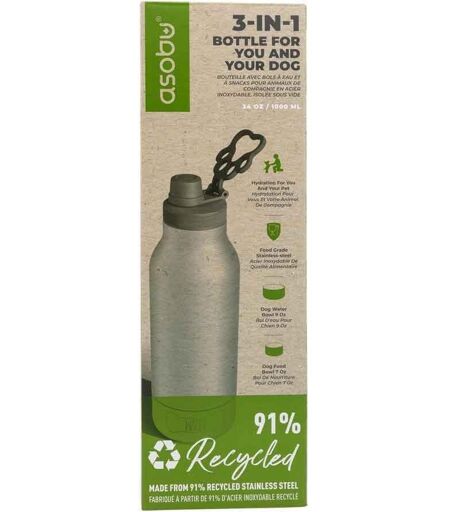 Asobu Dog Bowl Buddy recycelte Edelstahlflasche mit 2 Näpfen - silber (SDB2 recycled SS) 353887