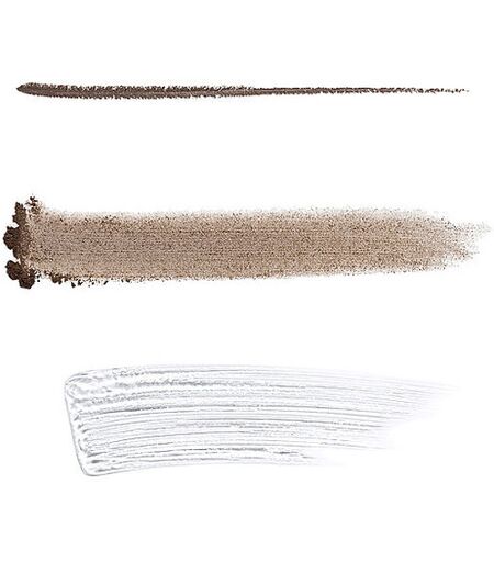 Ihre perfekten Brauen, vereinfacht. 3-in-1-Multitasking für jeden erdenklichen Look. Der übertragungssichere Augenbrauenfüller hält 24 Stunden lang, ohne zu verblassen. Wasserfest und wischfest. Bleibt farbecht. Mit der mikropräzisen Spitze des Stifts können Sie die Form Ihrer natürlichen Augenbrauen definieren und verstärken. Mit leichtem Druck können Sie haarähnliche Striche ziehen und den Look von natürlich bis kräftig gestalten. (Stift, 0,002 oz./0,07g) 94 % sagen, dass die Augenbrauen geformt und definiert aussehen.* Füllen Sie spärliche Stellen mit dem Augenbrauenfüller-Puder auf, um einen weichen, diffusen Look zu erzielen. Die flexible Spitze spendet dünnen, aufbaubaren Puder für ein weiches, diffuses Aussehen. (Puder, 0,01 oz./0,25g) 93 % der Befragten gaben an, dass ihre Augenbrauen voller und weniger spärlich aussehen.* Stylen und fixieren Sie die Härchen den ganzen Tag lang mit dem klaren, 24 Stunden lang nicht verblätternden Gel. Mit natürlichem** Kastaniensamenöl. (Gel, 1,75 ml, 0,06 fl.oz.) 92 % waren der Meinung, dass sich das Produkt beim Auftragen leicht kontrollieren lässt*. Der Stift lässt sich mit einem handelsüblichen Bleistiftspitzer leicht anspitzen (Spitzer nicht im Lieferumfang enthalten). *Verbrauchertest an 119 Frauen, die das Produkt 1 Woche lang verwendet haben. **Nach ISO-Norm 16128. Aus pflanzlichen Quellen, mineralischen Quellen ohne Erdöl und/oder Wasser.Ihre perfekten Brauen, vereinfacht. Anwendung: Wenn Sie den Bleistift verwenden, drehen Sie ihn nur minimal auf, damit er nicht bricht. Etwa 1 mm freilegen, wobei der Bleistift gerade noch aus der Spitze herausschaut. Üben Sie beim Auftragen des Bleistifts nur leichten Druck aus, da die mikropräzise Spitze sehr empfindlich ist. Holen Sie das Beste aus Ihrem Multitasking-Stift heraus: Zähmen Sie widerspenstige Brauen: Füllen Sie die natürlichen Augenbrauen mit dem Stift auf, indem Sie ihn mit leichtem Druck in kurzen, wuscheligen Strichen auftragen. Kämmen Sie die Brauen mit dem Gel nach oben und außen durch. Geben Sie spärlichen oder schwachen Brauen Form und Fülle: Zeichnen Sie mit einem Bleistift Punkte am Anfang, am höchsten Punkt und am Ende der Brauen ein. Verbinden Sie die Punkte mit leichtem Druck in kurzen, haarähnlichen Strichen. Bauen Sie die Brauen mit Augenbrauenfüllpuder auf, um ein volles, flauschiges Aussehen zu erzielen. Kämmen Sie die Härchen mit Gel nach oben und außen, um sie zu fixieren. Füllen Sie spärliche natürliche Augenbrauen auf: Ahmen Sie das Aussehen natürlicher Augenbrauenhärchen nach, indem Sie den Stift mit leichtem Druck in kurzen, schnellen Strichen auftragen. Lücken mit Puder abdecken. ...