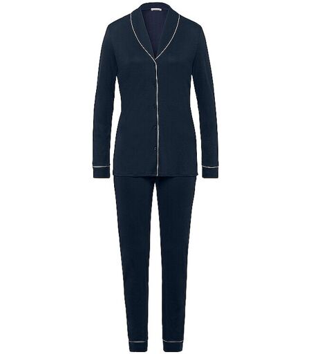 Damen Pyjama aus Lyocell Angenehm leicht zu tragen Glatter Griff Fallendes Revers Knöpfe zum Verschluss Langarm Lang geschnittene Hose Gerade Passform Farbe: Deep Navy Material: 100% Lyocell ...