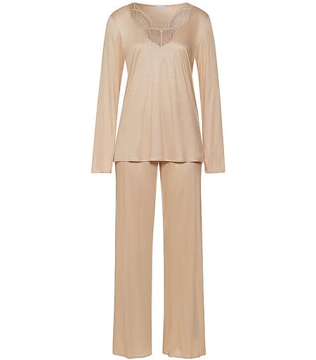 Damen Pyjama aus Modal Tencel V-Ausschnitt mit Spitz Langarm Unifarben Lockere Passform Bequemer Bund Farbbezeichnung: Coffee Quartz Material: 100% Modal Tencel ...