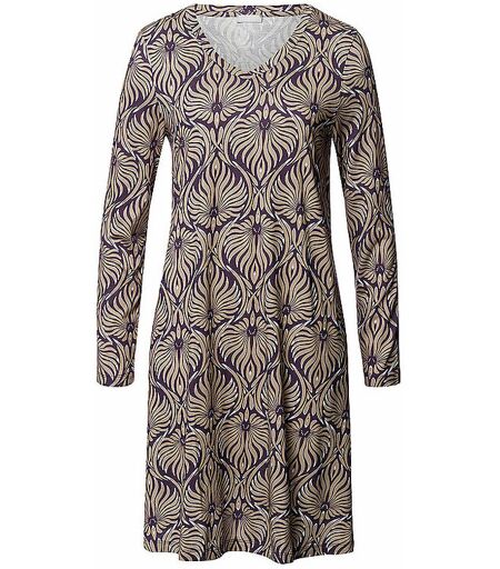 Damen Nachthemd aus weichem Modal-Mix V-Ausschnitt Langarm Leicht ausgestellte Form geschnitten Florales Allover-Muster Farbbezeichnung: Amnethyst Damask Länge: 95cm Material: 50% Baumwolle, 50% Modal ...