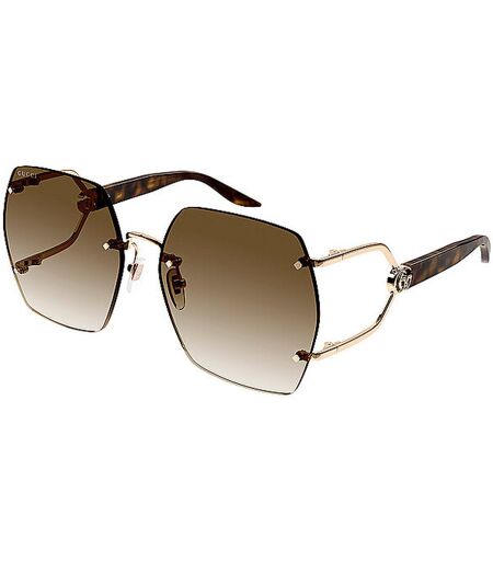 Modell: GG156S Damen Sonnenbrille Form: Rechteckig Nasenpads aus Gummi 100% UVA-/UVB-Schutz Doppel G Cut-out-Detail Glasbreite: 56mm Stegbreite: 17mm Bügellänge: 140 mm Farbbezeichnung: 2 (gold) Material: Metall, Acetat ...