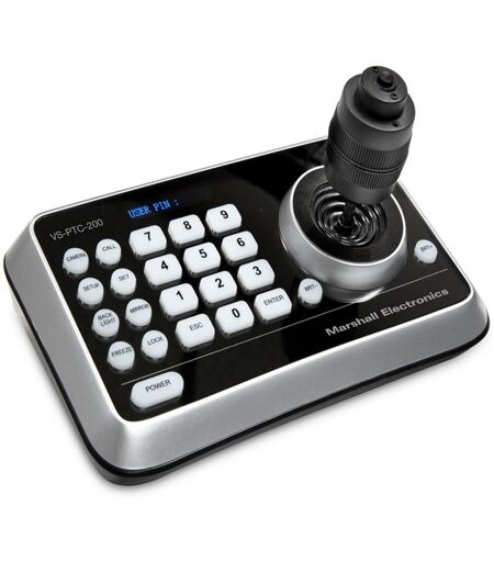 Marshall Electronics VS-PTC-200 PTZ Controller 4D Joystick ermöglicht gleichzeitige Kontrolle über Pan, Tilt und Zoom 128 Presets möglich, mit anpassbarer Übergangsgeschwindigkeit One Touch Control für Helligkeit, Hintergrundbeleuchtung, Mirror/Flip, etc. Full Duplex RS-232 & RS-422 Interface Kompatibel mit VISCA und PELCO Helles Display Beleuchtete Tasten Mit dem VS-PTC-200 können Pan, Tilt uns Zoom ...