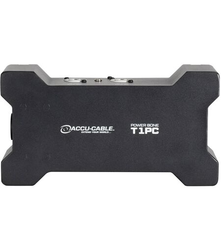 Der Accu-Cable Power Bone T1PC Stromverteilerkasten ist für die zuverlässige und sichere Stromverteilung bei Eventproduktionen und Festinstallationen konzipiert. Mit seinen innovativen Funktionen sorgt der Power Bone T1PC für eine komfortable Stromverbindung.Ausgestattet mit verriegelbaren Seetronic-Eingangs- und Durchgangsanschlüssen bietet dieser Stromverteilerkasten eine robuste und sichere Stromquelle. Außerdem verfügt er über vier verriegelbare Seetronic-Stromausgangsanschlüsse, mit denen Sie mehrere Geräte gleichzeitig mit Strom versorgen können. Die beiden 5V-USB-Anschlüsse (5V-2,1A und 5V-1,3A) bieten eine bequeme Strom- oder Ladelösung für Ihre USB-betriebenen Geräte.Ausgestattet mit Stromanzeige-LEDs sowohl für den Eingang als auch für die Ausgänge, informiert Sie der Power Bone T1PC auf einen Blick über den Stromstatus. Mit einer maximalen Daisy-Chain-Stromaufnahme von 15 A können Sie Ihr Stromversorgungssystem problemlos erweitern, ohne die Leistung zu beeinträchtigen.Die Schutzart IP20 gewährleistet die sichere Verwendung in trockenen Räumen und gibt Ihnen Sicherheit bei temporären Veranstaltungen im Freien. Die kompakten Abmessungen von 225x120x111 mm und das geringe Gewicht von 1,5 kg erleichtern den Transport und den Aufbau bzw. die Installation, ohne dabei ins Auge zu fallen.Zum Lieferumfang des Power Bone T1PC gehört eine schnell lösbare, verriegelbare Omega-Halterung für eine sichere Montage sowie ein 2 m langes, verriegelbares 4 mm2-Stromkabel für einen bequemen Anschluss.Erleben Sie die Kraft der Effizienz und Zuverlässigkeit mit dem Accu-Cable Power Bone T1PC. Übernehmen Sie die Kontrolle über Ihren Stromverteilungsbedarf und stellen Sie jederzeit eine nahtlose Leistung sicher.Seetronic Verriegelung der Stromeingänge und -ausgänge, 4x Seetronic verriegelbare Leistungsausgänge, 2x USB-Buchsen. USB1: 5V-2.1A, USB2: 5V-1.3A, IP20, nur für den Einsatz in trockenen Räumen geeignet, Betriebsanzeige-LEDs für Eingang und Ausgänge, Technische Daten: SpezifikationVerbindungen:Seetronic Verriegelung der Stromeingänge und -ausgänge4x Seetronic verriegelbare Leistungsausgänge2x USB-Buchsen. USB1: 5V-2.1A, USB2: 5V-1.3AElektrisch:Leistungsaufnahme: 100-240VAC ~ 50/60HzMaximale Daisy-Chain-Stromaufnahme: 15AAbmessungen und Gewicht:Abmessungen (LxBXH): 225x120x111mmGewicht: 1,5 kg.Enthaltenes Zubehör:Schnellspanner, Omega-Bügel mit Verriegelung2 Meter, 4 mm2, verriegelbares Stromkabel ...