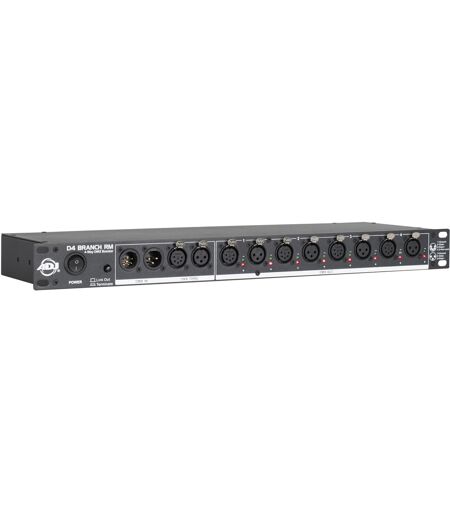 Der D4 Branch RM™ ist ein 4-Wege-Verteiler/Booster mit 3-poligen und 5-poligen XLR-Eingangs- und Ausgangsbuchsen für einen einzigen Rackplatz. Dieses Gerät nimmt das eingehende DMX-Signal auf und verteilt es auf vier (4) separate Ausgänge, die elektronisch voneinander isoliert sind, um eine unterbrechungsfreie Datenübertragung zu gewährleisten. Darüber hinaus verfügt jeder Ausgang über spezielle Treiber, um das eingehende Signal zu verstärken, und das Gerät enthält eine Link-/Terminate-Taste zur einfachen Fehlersuche.Technische Daten: 4-Wege-DMX-Datensplitter / Vollständig DMX512 (1990) konform, Verknüpfungs-/Beendigungstaste für einfache Fehlersuche, DMX-Status-LED-Anzeige, (1) 3pin + (1) 5pin XLR Isolierte Eingänge, (1) 3pin + (1) 5pin XLR Passiver Schleifenausgang, (4) 3pin + (4) 5pin XLR Isolierte Ausgänge ...