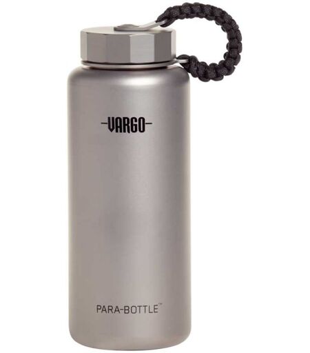 Die Vargo Titanium Para-Bottle Titan Trinkflasche hat ein Weithalsöffnung, dieser erleichtert die Reinigung der Flasche, auch das Befüllen wird einfacher. Die relativ schlanke Form der Flasche sorgt dafür, dass sie gut und sicher in der Hand liegt. Bei der Para-Bottle ist auch der aufwendig gearbeitete Deckel aus hochwertigem Titan, lediglich die Dichtung ist notwendigerweise aus Silikon, die Flasche schließt ob der hochweritgen Verarbeitung bombig dicht. Das verwendete Titan hat den Vorteil, absolut geschmacksneutral zu sein und mit keinem Lebensmittel zu reagieren. Der Deckel ist mit einer geflochtenen Paracordschnur (Bruchlast 250 kg) an der Flasche fixiert. Im Notfall hat man damit 2,10 m feinste Schnur für Reparaturen oder sonstiges parat - praktisch! Zum Transport passt die Para-Bottle in jede herkömmliche Flaschentasche am Rucksack. ...