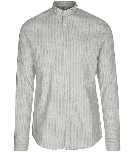 Herren Hemd aus Baumwoll-Leinen-Mischung mit Stretch-Anteil Schmaler Stehkragen Schließt mit Knopfleiste Langarm mit geknöpften Manschetten Streifenmuster Gerade Passform Farbbezeichnung: Eucalyptus Material: 82% Baumwolle, 15% Leinen, 3% Elasthan ...