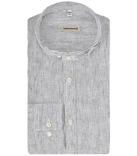 Herren Trachtenhemd aus hochwertigem Baumwoll-Mix Stehkragen mit Riegel und Knopfverschluss Langarm Streifenmuster Wäscheknöpfe Weitenregulierbare Einknopf-Manschette Abgerundeter Saum Alle Produkte und Stoffe werden in Europa produziert Farbbezeichnung: Schwarzblau Material: 98% Baumwolle, 2% Elasthan ...