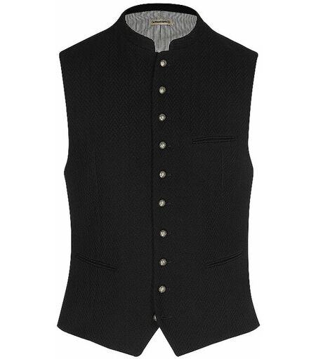 Herren Trachtengilet aus Baumwolle Stehkragen Hoher Tragekomfort durch elastische Rückenpartie mit verstellbaren Gurt 3 Paspeltaschen aus Oberstoff Innentasche zum Verschließen Alle Produkte werden in Europa produziert Schmale Passform Farbbezeichnung: Schwarzblau Material: 100% Baumwolle Rückenteil: 51% Polyester, 45% Baumwolle, 4% Elasthan Futter: 60% Viskose, 37% Baumwolle, 3% Elasthan ...