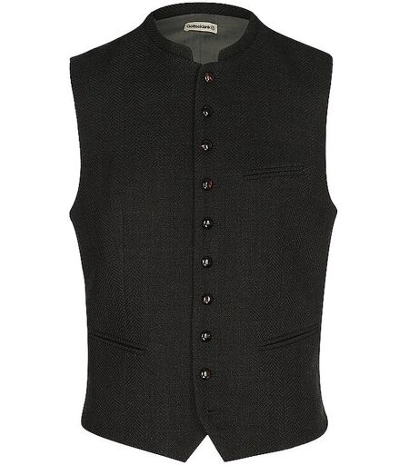 Herren Trachtengilet aus Schurwolle Stehkragen Ärmellos Mit Knopfleiste Strukturmuster Brustleistentaschen Rückenteil mit Streifen Weitenverstellbarer Riegel Farbbezeichnung: Rosmarin Material: 100% Schurwolle Material2: 97% Baumwolle, 3% Elasthan ...
