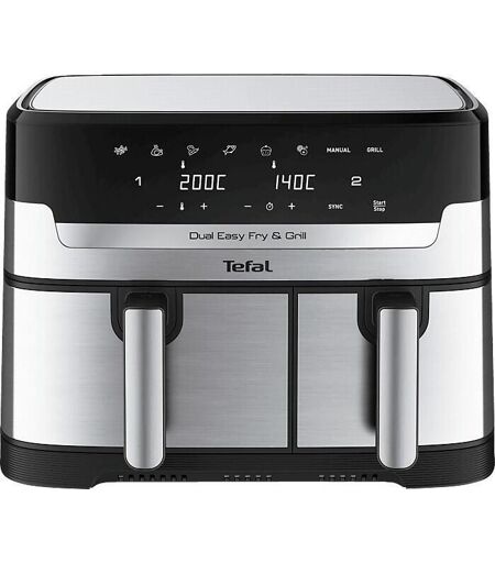 Tefal Dual Easy Fry & Grill Heißluftfritteuse 5,2 L + 3,1 L , edelstahl/schwarz EY905D10