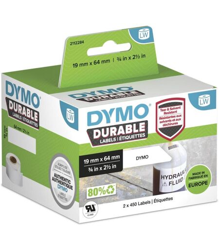 Dymo Original Hochleistung Etikett für LabelWriter™, Kunststoff - weiss - permanent haftend, widerstandsfähig, 2 x 450 2112284