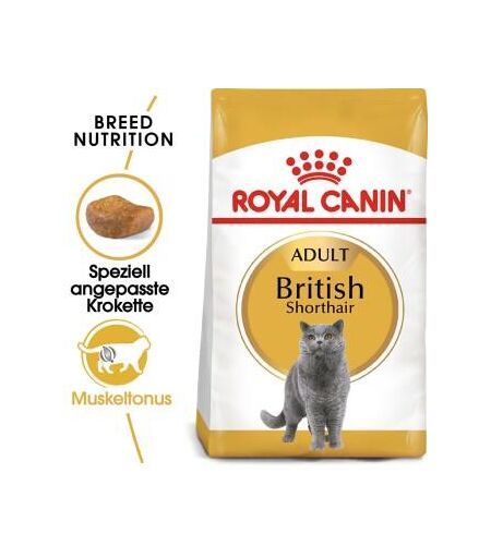Warum ein besonderes Futter für Britisch Kurzhaar Katzen? Britisch Kurzhaar Katzen (BKH) haben einen kräftigen und muskulösen Körper. Um ihre Kraft und Kondition zu erhalten, benötigen sie die richtigen Nährstoffe. ROYAL CANIN British Shorthair Adult ist speziell auf die Ernährungsbedürfnisse von Britisch Kurzhaar Katzen abgestimmt. Aufgrund des stämmigen Körperbaus der BKH wurde der Proteingehalt des ROYAL CANIN British Shorthair Adult Futters so angepasst, dass es zum Erhalt der Muskelmasse der Britisch Kurzhaar Katze beiträgt. Das Futter ist außerdem mit L-Carnitin angereichert, einem Nährstoff, der den Fettstoffwechsel unterstützt. Die enthaltenen Omega-3-Fettsäuren (EPA und DHA) sorgen für gesunde Knochen und Gelenke – so kann eine BKH ihre normale Aktivität beibehalten. Durch die Aufnahme von Taurin (einer Aminosäure) sowie EPA- und DHA-Fettsäuren trägt ROYAL CANIN British Shorthair Adult zur Aufrechterhaltung der Herzfunktion der BKH bei. Der speziell entwickelte, ausgewogene Mineralstoffgehalt unterstützt die Harnwegsfunktion einer Britisch Kurzhaar Katze. Die speziell entworfenen Kroketten des ROYAL CANIN British Shorthair Adult Futters sind auf den breiten Kiefer der Britisch Kurzhaar Katze abgestimmt. Die großen und bogenförmigen Kroketten erleichtern ihr die Nahrungsaufnahme und regen zum intensiven Kauen an, wodurch die Mund- und Zahnhygiene unterstützt wird. Für mehr Abwechslung: Weitere Produktvariationen Um den individuellen Vorlieben verschiedener Britisch Kurzhaar Katze gerecht zu werden, ist ROYAL CANIN British Shorthair Adult auch als Nassfutter in Soße erhältlich. Wenn Sie eine Mischfütterung in Betracht ziehen, befolgen Sie einfach unsere Fütterungsempfehlungen, um sicherzustellen, dass Ihre BKH die richtige Menge an Nass- und Trockenfutter erhält. ROYAL CANIN Qualitätsversprechen Alle ROYAL CANIN Produkte durchlaufen eine umfassende Qualitätskontrolle, um eine optimale Futterqualität zu gewährleisten und den individuellen Ernährungsbedürfnissen sowie dem Lebensstil Ihrer Katze gerecht zu werden. Das bedeutet, mit ROYAL CANIN British Shorthair Adult bieten Sie Ihrer Katze eine hochwertige und ausgewogene Ernährung. ...