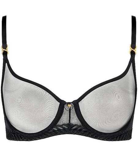 Damen BH mit Bügel Für stabilen Halt Sorgt für eine harmonische Form Satinstickerei Transparenter Stoff Mit starrem Tüll gefütterte Cups Leichter Push-Up-Effekt und guter Halt Vergoldetes Zamak-Frontjuwel Farbbezeichnung: Black Material: 82% Polyamid, 18% Elasthan ...