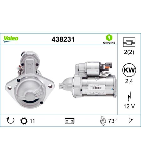 Anzahl der Gewindelöcher [Stück]: 2. Anzahl der Löcher [Stück]: 2. Anzahl der Zähne [Stück]: 11. Drehrichtung: Im Uhrzeigersinn. Flanschendurchmesser [mm]: 82,5. Hersteller: VALEO. Herstellernummer: 438231. Index: VAL438231. Nennleistung [kW]: 2,4. Spannung [V]: 12. Zustand: Neu. ...