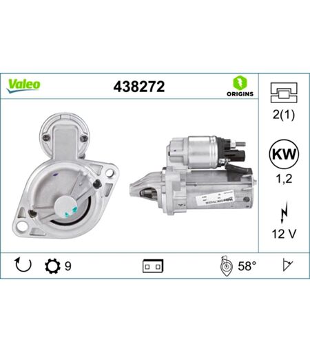 Anzahl der Gewindelöcher [Stück]: 1. Anzahl der Löcher [Stück]: 2. Anzahl der Zähne [Stück]: 9. Drehrichtung: Im Uhrzeigersinn. Flanschendurchmesser [mm]: 76,2. Hersteller: VALEO. Herstellernummer: 438272. Index: VAL438272. Nennleistung [kW]: 1,2. Spannung [V]: 12. Zustand: Neu. ...
