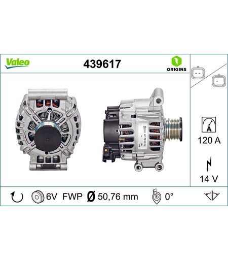 VALEO Generator NEW ORIGINAL PART Drehrichtung:Drehrichtung im Uhrzeigersinn Spannung [V]:14 V Gewicht [kg]:6,41 kg Befestigungsart:Direktbefestigung Rippenanzahl:6 Riemenscheiben:mit Freilaufriemenscheibe Klemme:B+ Riemenscheiben-Ø [mm]:51 mm Neuteil ohne Pfand Generator-Ladestrom [A]:120 A , u.a. für Citroën C4 II (B7), 1598 cm³, 120 PS (88 kW), 11/2009 bis 12/2016, KBA-Nr: 3001AKTCitroën C4 II (B7), 1397 cm³, 95 PS (70 kW), ab 11/2009, KBA-Nr: 3001AOBCitroën C4 II (B7), 1598 cm³, 156 PS (115 kW), 11/2009 bis 12/2016, KBA-Nr: 3001AKUPeugeot 508 I (8D), 1598 cm³, 120 PS (88 kW), 11/2010 bis 12/2018, KBA-Nr: 3003AOHPeugeot 508 Sw I (8E), 1598 cm³, 120 PS (88 kW), 11/2010 bis 12/2018, KBA-Nr: 3003AOIPeugeot 508 I (8D), 1598 cm³, 156 PS (115 kW), 11/2010 bis 12/2018, KBA-Nr: 3003ANAPeugeot 508 Sw I (8E), 1598 cm³, 156 PS (115 kW), 11/2010 bis 12/2018, KBA-Nr: 3003ANBCitroën C5 III (RD), 1598 cm³, 120 PS (88 kW), ab 7/2010, KBA-Nr: 3001ALRCitroën C5 III (RW), 1598 cm³, 120 PS (88 kW), ab 7/2010, KBA-Nr: 3001ALSMini Mini (R59), 1598 cm³, 200 PS (147 kW), 11/2011 bis 4/2015, KBA-Nr: 0005BBMMini Mini (R57), 1598 cm³, 200 PS (147 kW), 2/2010 bis 6/2015, KBA-Nr: 0005BBMMini Mini (R59), 1598 cm³, 163 PS (120 kW), 11/2011 bis 4/2015, KBA-Nr: 0005ATTCitroën DS3, 1598 cm³, 203 PS (149 kW), 2/2011 bis 7/2015, KBA-Nr: 3001ALVMini Mini (R56), 1598 cm³, 115 PS (85 kW), 9/2006 bis 11/2013, KBA-Nr: 0005AGICitroën DS4 (NX), 1598 cm³, 120 PS (88 kW), 4/2011 bis 7/2015, KBA-Nr: 3001AOCCitroën DS4 (NX), 1598 cm³, 156 PS (115 kW), 4/2011 bis 7/2015, KBA-Nr: 3001AODCitroën DS4 (NX), 1598 cm³, 200 PS (147 kW), 4/2011 bis 7/2015, KBA-Nr: 3001ALYCitroën DS4 (NX), 1997 cm³, 163 PS (120 kW), 4/2011 bis 7/2015, KBA-Nr: 3001AMDCitroën C4 Picasso I (UD), 1598 cm³, 156 PS (115 kW), 9/2010 bis 8/2013, KBA-Nr: 3001AJPCitroën C4 Grand Picasso I (UA), 1598 cm³, 156 PS (115 kW), 9/2010 bis 8/2013, KBA-Nr: 3001AJPPeugeot 308 Cc (4B), 1598 cm³, 200 PS (147 kW), 10/2010 bis 12/2014, KBA-Nr: 3003AMVMini Mini (R56), 1598 cm³, 163 PS (120 kW), 3/2010 bis 11/2013, KBA-Nr: 0005AFEMini Mini (R58), 1598 cm³, 200 PS (147 kW), 12/2010 bis 4/2015, KBA-Nr: 0005BEKPeugeot Partner, 1598 cm³, 98 PS (72 kW), ab 11/2010, KBA-Nr: 3003AOSPeugeot 208 I (CA, CC), 1598 cm³, 156 PS (115 kW), ab 3/2012, KBA-Nr: 3003ARXCitroën DS3, 1598 cm³, 207 PS (152 kW), 2/2011 bis 7/2015, KBA-Nr: 3001ANVMini Mini Clubman (R55), 1598 cm³, 200 PS (147 kW), 3/2010 bis 6/2014, KBA-Nr: 0005BBLCitroën DS5, 1598 cm³, 156 PS (115 kW), 11/2011 bis 7/2015, KBA-Nr: 3001AOXPeugeot Partner, 1598 cm³, 120 PS (88 kW), ab 4/2010, KBA-Nr: 3003AORCitroën Berlingo (B9), 1598 cm³, 120 PS (88 kW), ab 11/2009, KBA-Nr: 3001AMLMini Mini (R58), 1598 cm³, 122 PS (90 kW), 12/2010 bis 4/2015, KBA-Nr: 0005BEHMini Mini (R58), 1598 cm³, 184 PS (135 kW), 12/2010 bis 4/2015, KBA-Nr: 0005BEJMini Mini (R58), 1598 cm³, 211 PS (155 kW), 12/2010 bis 5/2015, KBA-Nr: 0005BEEMini Mini (R56), 1598 cm³, 200 PS (147 kW), 1/2012 bis 11/2013, KBA-Nr: 0005BBNCitroën... ...