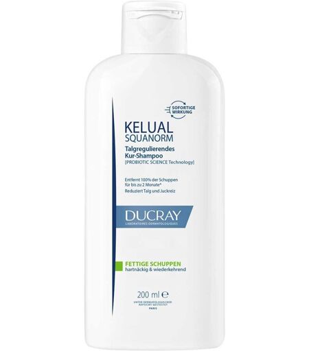 Anwendungsgebiet von DUCRAY KELUAL SQUANORM Shampoo Fettige SchuppenDas DUCRAY KELUAL SQUANORM Shampoo Fettige Schuppen ist speziell für die Behandlung von fettigen Schuppen geeignet. Es entfernt Schuppen ab der ersten Anwendung, reguliert die Talgproduktion, lindert Juckreiz sofort und sorgt für eine nachhaltige Reinigung und Klärung der Kopfhaut. Dank der Probiotic Science Technology wird das Gleichgewicht des Kopfhaut-Mikrobioms wiederhergestellt und dauerhaft bewahrt. Ideal für Jugendliche und Erwachsene mit fettigen Schuppen.Wirkungsweise von DUCRAY KELUAL SQUANORM Shampoo Fettige SchuppenDas DUCRAY KELUAL SQUANORM Shampoo Fettige Schuppen wirkt gezielt gegen fettige Schuppen durch seine innovative Probiotic Science Technology. Es entfernt Schuppen sofort und nachhaltig, reguliert die Talgproduktion und stärkt die Kopfhautbarriere. Die enthaltenen Wirkstoffe wie Bernsteinsäure, Pirocton Olamin und Monolaurin bekämpfen übermäßige Hefepilze, entgiften die Kopfhaut und reduzieren Talgüberschuss. Zusätzlich spenden Glycerin und Bisabolol Feuchtigkeit und lindern Juckreiz, um eine gesunde und ausgeglichene Kopfhaut zu fördern.Wirkstoffe / Inhaltsstoffe / ZutatenDUCRAY KELUAL SQUANORM Shampoo Fettige Schuppen enthält:Aqua, Glycerin, Decyl Glucoside, Disodium Cocoyl Glutamate, Succinic Acid, 1,2 - Hexanediol, Bisabolol, Caprylyl Glycol, Fragrance (Parfum), Glyceryl Laurate, Hydroxypropyl Guar Hydroxypropyltrimonium Chloride, Pirocton Olamine, Sodium Hydroxide, Trisodium Ethylenediamine Disuccinate, Xanthan Gum,GegenanzeigenBei bekannter Überempfindlichkeit gegenüber einen der oben genannten Inhaltsstoffe sollte dieses Produkt nicht angewendet werden.DosierungAnwendungsempfehlung von DUCRAY KELUAL SQUANORM Shampoo Fettige Schuppen:Das Kur-Shampoo auf die feuchte Kopfhaut auftragen, sanft einmassieren und ausspülen. Anwendung wiederholen und 2-3 Minuten einwirken lassen. Gründlich ausspülen.Intensivphase: 3-mal pro Woche für 2 WochenErhaltungsphase: ...