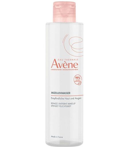 Anwendungsgebiet von Avène MizellenwasserAvène Mizellenwasser ist für alle empfindlichen Hauttypen geeignet, reinigt die Haut tiefenwirksam, entfernt Make-up und beruhigt die Haut in nur einem Schritt – einfach und schnell. Die tägliche Gesichtspflege am Morgen und am Abend ist das A und O für eine gut gepflegte, strahlende und gesunde Haut. Der erste Schritt des täglichen Beauty-Rituals ist die tägliche Reinigung. Verunreinigungen, Talg, Schweiß und Make-up-Reste verstopfen die Poren unserer Haut und hindern sie am Atmen. Deshalb ist es wichtig, die Haut morgens von Talg und Schweiß und abends von den Spuren des Alltags (Make-up, Verunreinigungen und Umweltverschmutzung) zu befreien. Die Reinigung bereitet die Haut optimal auf die nachfolgende Pflege vor. Die Haut kann die Pflegeprodukte besser aufnehmen und die Aktivstoffe können effektiver wirken. Die Mizellen Reinigungslotion für die sanfte Reinigung und Make-up-Entfernung wirkt gleichzeitig auch beruhigend wie ein Gesichtswasser. Sie reinigt Gesicht, Augen und Lippen einfach und schnell in nur einem Schritt, hinterlässt ein weiches und geschmeidiges Gefühl auf der Haut und verhindert, dass sie austrocknet. Avène bietet für jeden Hauttyp das passende Reinigungsprodukt - von empfindlicher normaler bis Mischhaut bis hin zu trockener bis sehr trockener Haut. Die Avène Reinigungen stehen für sanfte und besonders verträgliche Formulierungen, auf Basis des einzigartigen Avène Thermalwassers.Wirkungsweise von Avène MizellenwasserDie Mizellen Reinigungslotion reinigt die Haut einfach und schnell in nur einem Schritt: Mildes Mizellen-Tensid sorgt für eine besonders schonende und zugleich wirksame Tiefenreinigung ohne hautstrapazierendes Reiben und bewahrt den hauteigenen Hydrolipidfilm. Pentylenglykol spendet Feuchtigkeit und wirkt in Kombination mit Cetrimonium Bromide antimikrobiell. Sehr hoher Gehalt an Avène Thermalwasser wirkt hautberuhigend ...
