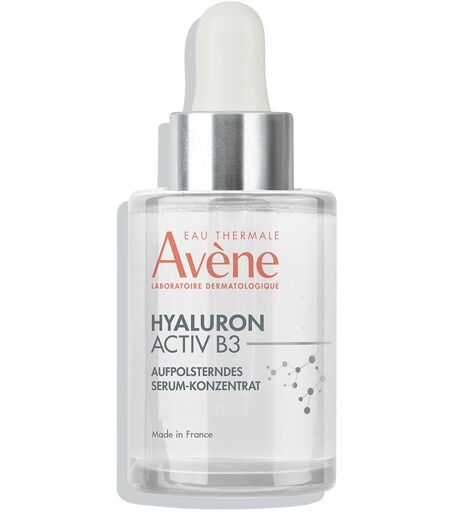 HYALURON ACTIV B3 Aufpolsterndes Serum-Konzentrat – Revitalisierendes Anti-Aging-Serum HYALURON ACTIV B3 Serum-Konzentrat von Eau Thermale Avène ist ein hochwirksames Anti-Aging-Produkt, das entwickelt wurde, um den Zeichen der Hautalterung entgegenzuwirken. Es enthält eine kraftvolle Mischung aus 1,5 Prozent Hyaluronsäure (hohes und niedriges Molekulargewicht) und 6 Prozent Niacinamid, die zusammenarbeiten, um die Haut zu straffen, Falten zu glätten und ihre Elastizität zu verbessern. Die minimalistische Formel mit nur 8 Inhaltsstoffen bietet nach nur 15 Tagen Anwendung sichtbare Ergebnisse.* Dieses Serum ist für alle Hauttypen geeignet, einschließlich empfindlicher Haut, und kann sogar im besonders sensiblen Augenbereich angewandt werden. Straffende Wirkung nach 15 Tagen* Glättet Falten und verbessert die Elastizität* 1,5 Prozent Hyaluronsäure und 6 Prozent Niacinamid Minimalistische Formel mit 8 Inhaltsstoffen Geeignet für alle Hauttypen An empfindlicher Haut getestet Ohne Duftstoffe 94 Prozent natürliche Inhaltsstoffe Umweltfreundliche, recycelbare Glasflasche mit Pipette Revitalisierendes Anti-Aging-Serum für eine sichtbar jüngere Haut HYALURON ACTIV B3 Aufpolsterndes Serum-Konzentrat wurde entwickelt, um den natürlichen Alterungsprozess der Haut zu verlangsamen. Das Serum wirkt tief in der Haut, um Falten zu reduzieren und die Hautstruktur zu verbessern. Es ist ideal für Personen, die eine effektive Anti-Aging-Pflege suchen, die schnell und nachhaltig wirkt. Wie wirkt HYALURON ACTIV B3 Aufpolsterndes Serum-Konzentrat? Die einzigartige Formel des HYALURON ACTIV B3 Serum-Konzentrats wirkt durch die Kombination von Hyaluronsäure und Niacinamid. Hyaluronsäure bindet Feuchtigkeit in der Haut und sorgt für ein pralleres und glatteres Erscheinungsbild. Niacinamid, auch bekannt als Vitamin B3, stärkt die Hautbarriere, reduziert Pigmentflecken und wirkt entzündungshemmend. Diese Kombination sorgt für eine schnelle und langanhaltende Wirkung. Anwendungshinweise für HYALURON ACTIV B3 Aufpolsterndes Serum-Konzentrat Es kann täglich morgens und abends auf die gereinigte Haut aufgetragen werden. Ein paar Tropfen genügen, um das gesamte Gesicht, den Hals und das Dekolleté zu behandeln. Für optimale Ergebnisse sollte das Serum regelmäßig über einen Zeitraum von mindestens 28 Tagen angewandt werden. Die Verwendung ist denkbar einfach: Trage HYALURON ACTIV B3 Aufpolsterndes Serum-Konzentrat morgens und abends auf die gereinigte Haut auf. Massiere es sanft ein, bis es vollständig eingezogen ist. Seine Wirkung kann das Serum-Konzetrat am besten entfalten, wenn es im Rahmen einer kompletten Hautpflegeroutine mit anderen Produkten aus der Serie HYALURON ACTIV B3 von Eau Thermale Avène kombiniert wird. Die Zellerneuernde Creme, die Multi-intensive Nachtcreme und die Dreifach korrigierende Augenpflege ergänzen das Serum-Konzentrat perfekt. Häufig gestellte Fragen (FAQ): Ist HYALURON ACTIV B3 Aufpolsterndes Serum-Konzentrat auch für empfindliche Haut... ...