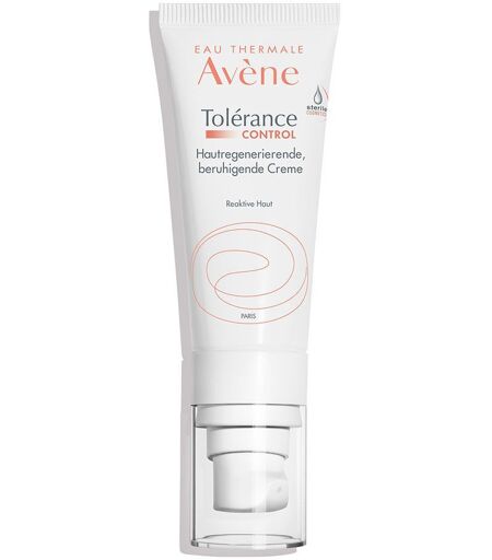 Eau Thermale Avène – Tolérance CONTROL Creme zur Beruhigung überempfindlicher, allergischer Haut Bei der Tolérance CONTROL Creme von Eau Thermale Avène handelt es sich um eine beruhigende Creme für hypersensible normale und Mischhaut. Die speziell entwickelte Hautpflege beruhigt hypersensible, allergische und reaktive Haut sofort. Innerhalb von 30 Sekunden* lindert sie Reizungen und Rötungen sowie Kribbeln und Spannungsgefühl. Die innovative D-Sensinose, ein patentierter postbiotischer Aktivstoff, wirkt intensiv feuchtigkeitsspendend und unterstützt die Wiederherstellung der Hautbarriere innerhalb von 48 Stunden**. Vor der Pflege wird die Reinigung mit Eau Thermale Avène Tolerance Reinigungslotion empfohlen. Beruhigt hypersensible Haut in 30 Sekunden* Spendet 24 Stunden*** Feuchtigkeit und regeneriert die Hautbarriere innerhalb von 48 Stunden** Reduziert langfristig die Hyperaktivität der Haut D-Sensinose lindert sofort Reizungen und Rötungen Sterile Cosmetics-Technologie schützt vor Keimen Ohne Duft- und Konservierungsstoffe Für Kinder ab 2 Jahren und Erwachsene Ideal für allergische, überempfindliche Haut Weiß, cremige Textur, leicht aufzutragen Biologisch abbaubar 98 Prozent Inhaltsstoffe natürlichen Ursprungs Beruhigende Creme für sofortige Linderung Die Tolérance CONTROL Creme von Eau Thermale Avène lindert die Beschwerden von Personen mit hypersensibler Haut in kürzester Zeit. Durch den neuen postbiotischen Aktivstoff D-Sensinose beruhigt sie die Haut in nur 30 Sekunden*. Symptome wie Rötungen, Kribbeln und Spannungsgefühle werden effektiv gemildert. Diese Creme, die ohne Duft- und Konservierungsstoffe auskommt, gewährleistet dank des innovativen Sterile Cosmetics®-Pumpverschlusses die Reinheit des Produktes – bei jeder Anwendung. Wirkweise der Tolérance CONTROL Creme Die Creme kombiniert Eau Thermale Avène Thermalwasser mit einer einzigartigen Auswahl an Inhaltsstoffen wie Caprylic/Capric Triglyceriden und Squalan, um die Haut zu beruhigen und intensiv zu pflegen. Die enthaltene D-Sensinose hilft, die Reaktionen der überempfindlichen Haut zu kontrollieren und zu reduzieren. Mit Bienenwachs und Squalan unterstützt die Creme die natürliche Hautbarriere und schützt vor schädlichen äußeren Einflüssen. Anwendungshinweise für Eau Thermale Avène – Tolérance CONTROL Creme Die Creme ist für die tägliche Anwendung konzipiert und sollte morgens und abends auf das gereinigte Gesicht, den Hals und die Augenkonturen aufgetragen werden. Für eine optimale Verträglichkeit ist es wichtig, dass du die Creme sanft einmassierst, ohne die Haut zu reizen. Verreibe die Creme zwischen deinen Fingern und tupfe sie vorsichtig auf Gesicht und Hals. Anschließend verteilst du die Creme mit leichten Bewegungen von der Gesichtsmitte zu den Konturen hin. Vergiss dabei den Hals nicht. Für eine optimale Pflegeroutine ist es empfehlenswert, die Haut vor dem Auftragen der Creme zu reinigen. Besonders gut eignet sich dafür die Tolérance Reinigungslotion, die speziell... ...