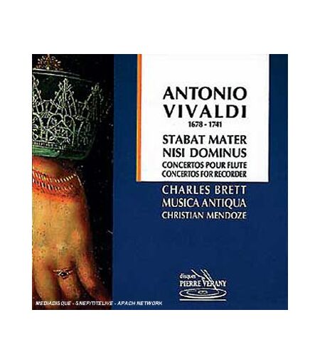 Binding : Audio CD, Label : Pierre Verany (Note 1 Musikvertrieb), Publisher : Pierre Verany (Note 1 Musikvertrieb), NumberOfDiscs : 1, medium : Audio CD, releaseDate : 1998-10-01, artists : Brett, Mendoze, Musica Antiqua, Mendoze, Ensemble Musica Antiqu, Antonio Vivaldi, composers : Antonio Vivaldi ...