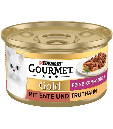 12x 85g Gourmet Gold Feine Komposition Ente und Truthahn Katzenfutter nass