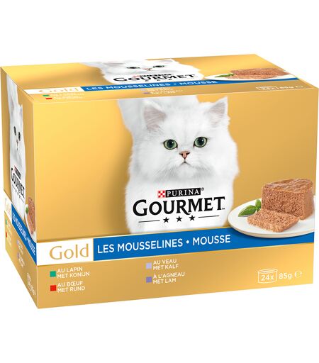 48x 85g Fleisch-Mix (Kaninchen, Kalb, Rind, Lamm) Gourmet Gold Feine Pastete Katzenfutter nass