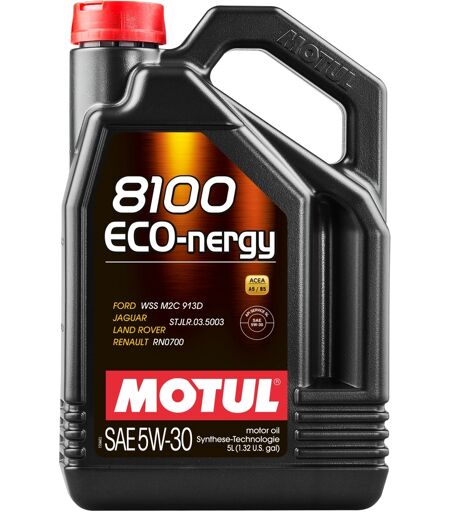 MOTUL 8100 ECO-NERGY 5W-30 [5L] Hochleistungsmotorenöl mit abgesenkter HTHS-Viskosität, ermöglicht reduzierten Kraftstoffverbrauch. Perfekt angepasst an die Anforderungen moderner Motorengenerationen mit Direkteinspritzung und Mehrventiltechnik. Besonders empfohlen für alle Pkw-Otto-Motoren inklusive BI-Fuel bzw. Autogas (LPG) und Dieselmotoren, mit oder ohne Aufladung. Eigenschaften: Synthese-Technologie Fuel Economy Motorenöl für Benziner und Diesel Spezifikation:ACEA (A5/B5) Spezifikation:CHRYSLER MS 50081 Inhalt [Liter]:5 l Spezifikation:FORD WSS-M2C913-D Spezifikation:RENAULT RN0700 Viskositätsklasse SAE:5W-30 Spezifikation:FIAT 9.55535-G1 Spezifikation:JAGUAR STJLR.03.5003 Spezifikation:API (SP) , OE-Nummer:MOTUL:8100 ECO-NERGY 5W-30 ...