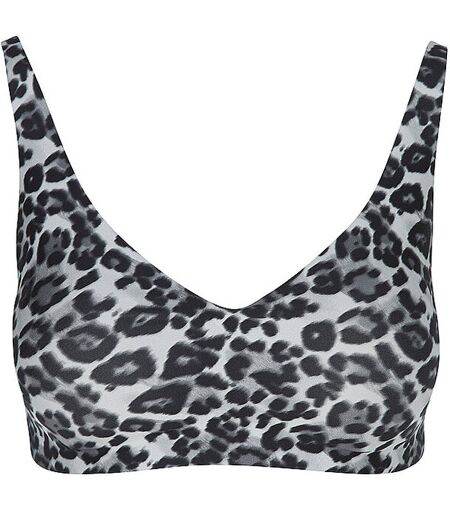 Damen BH aus SoftStretch Tiefausgeschnittener BH Verstellbare Träger Ohne Bügel Animal Alloverprint Farbbezeichnung: Grey Leopard Material: 65% Polyamid, 35% Elasthan Körbchen: 100% Polyester ...
