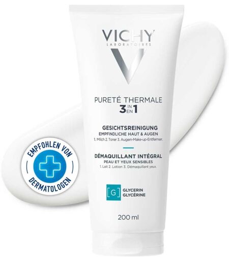 Make-up und Unreinheiten können mit Vichy Purete Thermale 3in1 Milch wirksam und sanft entfernt werden.