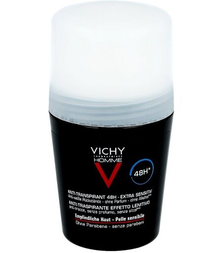 Anwendungsgebiet von Vichy Homme Deo Roll on für sensible HautVichy Homme Deo Roll on für sensible Haut schützt wirksam vor Achselnässe und Körpergeruch. Mit Vichy Homme Deo Roll on für sensible Haut erhalten Sie eine gesunde und geschmeidige Haut. Oligo Zink reduziert die Hautempfindlichkeit. Aufgrund der 24-Stunden-Wirkung werden Achselnässe und Körpergeruch langanhaltend reguliert. Wirkungsweise von Vichy Homme Deo Roll on für sensible HautEin in Vichy Homme Deo Roll on für sensible Haut enthaltenes Aliminium-Salz wirkt adstringierend auf die Schweißdrüsenausgänge, ohne den natürlichen Vorgang des Schwitzens zu blockieren. Oligo Zink reduziert die Hautempfindlichkeit. Das in Vichy Homme Deo Roll on für sensible Haut enthaltene Thermalwasser wirkt beruhigend bei gereizter Haut.Wirkstoffe / Inhaltsstoffe / ZutatenInhaltsstoffe (nach INCI) von Vichy Homme Deo Roll on für sensible Haut: Aqua/Water, Aluminium Chlorohydrate, Aluminium Sesquichlorohydrate, PPG-15 Stearyl Ether, Cetearyl Alcohol, Ceteareth-33, 7C12-13 Alkyl Lactate, Dimethicone, Hydrolyzed Algin, Iodopropynyl Butylcarbamate, PEG-4 Dilaurate, PEG-4 Laurate, Zinc Sulfate GegenanzeigenBei bekannter Überempfindlichkeit gegenüber einem der oben genannten Inhaltsstoffe sollte dieses Produkt nicht angewendet werden. DosierungAnwendungsempfehlung: Tragen Sie morgens eine dünne Schicht Vichy Homme Deo Roll on für sensible Haut auf die gründlich gereinigte, trockene Achselhaut auf. Sie können Vichy Homme Deo Roll on für sensible Haut auch mehrmals täglich anwenden. HinweiseVichy Homme Deo Roll on für sensible Haut enthält weder Alkohol noch Duftstoffe. Die Verträglichkeit von Vichy Homme Deo Roll on für sensible Haut wurde dermatologisch getestet, auch an empfindlicher Haut. Vichy Homme Deo Roll on für sensible Haut können in Ihrer Versandapotheke www.juvalis.de erworben werden. ...