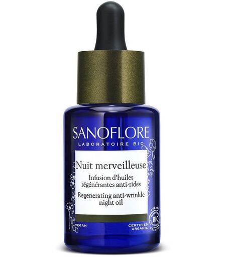 Sanoflore Essence Merveilleuse Anti-Aging Regenerierendes Nachtkonzentrat Sanoflore, ein französisches Bio-Labor, das 1972 in Vercors gegründet wurde, fängt die Kraft der natürlich destillierten Bio-Pflanzen ein, um sofort sichtbare Ergebnisse zu liefern und Ihre Haut jeden Tag zu einer Auszeit voller Frische und Gesundheit einzuladen. Sanoflore bietet allen Frauen eine innovative Bio-Alternative zu konventioneller Kosmetik. Die Essence Merveilleuse regeneriert Ihre Haut über Nacht und sorgt dafür, dass Ihre Haut am Morgen praller und strahlender aussieht. 10% der gesamten Inhaltsstoffe stammen aus biologischem Anbau*. 100% der gesamten Inhaltsstoffe sind natürlichen Ursprungs*. Unter dermatologischer Aufsicht getestet. Vegane Formulierung**. *Ökologische und biologische Kosmetik, die von Ecocert Greenlife nach den Ecocert-Richtlinien zertifiziert wurde. **Formel ohne Inhaltsstoffe tierischen Ursprungs oder Derivate. L'Essence Merveilleuse ist ein wahres Wunderwerk der Sinne und ein feines, nicht fettendes Trockenöl. Vor dem Schlafengehen aufgetragen, regeneriert dieses Konzentrat die Haut über Nacht und verwandelt sie beim Erwachen: Sie ist prall und strahlend, die Gesichtszüge sind geglättet und ausgeruht, Falten werden gemildert. Die nicht fettende Textur zieht dank einer einzigartigen Kombination aus ätherischen Ölen aus Bio-Pelargo. und Bio-Melissa officinalis, die im Herzen der Haut wirken und helfen, die Zellen zu reparieren und zu revitalisieren, sofort in die Haut ein. Der Duft von Zitrusfrüchten, Iris und Zedernholz beruhigt die Sinne und lädt Sie zu einem erholsamen Schlaf ein. 78% der Frauen finden, dass ihre Haut gleich nach dem ersten Aufwachen regeneriert ist. 85% der Frauen finden, dass ihr Teint gleich nach dem ersten Aufwachen belebt ist. 72% der Frauen finden, dass ihre Gesichtszüge nach dem ersten Aufwachen glatter wirken. 85% der Frauen finden, dass ihre Haut geschmeidiger ist. Dermatologisch getestet an 46 Frauen, alle Hauttypen. Anwendung: Vor dem Schlafengehen einige Tropfen dieses Trockenöls auf Gesicht und Hals auftragen. Zusammensetzung: Caprylic/capric triglyceride, dicaprylyl carbonate, squalane, Olea europaea fruit oil/ olive fruit oil*, Simmondsia chinensis oil/ jojoba seed oil*, Rosa rubiginosa seed oil*, Oenothera biennis oil/ evening primrose oil*, Citrus aurantium dulcis (orange) peel oil*, limonene, parfum/ fragrance, tocopherol, Pelargo. graveolens flower oil*, linalool, Origanum majorana leaf oil*, citronellol, Anthemis nobilis flower oil*, geraniol, Citrus aurantium amara flower oil/ bitter orange flower oil*, citral, Helianthus annuus seed oil/ sunflower seed oil, Melissa officinalis leaf oil*, benzyl alcohol, citric acid *Inhaltsstoff aus biologischem Anbau. ...