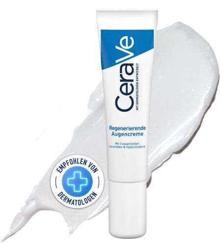 CeraVe regenerierende, glättende Augencreme für normale bis trockene Haut Die CeraVe Regenerierende Augencreme enthält hochwirksame Inhaltsstoffe, wie Hyaluron und die drei essenziellen Ceramide 1, 3 und 6-II, die die empfindliche Haut um die Augen mit Feuchtigkeit versorgen und die Erneuerung der natürlichen Hautschutzbarriere unterstützen. Dank der speziellen Wirkstoff-Freisetzung werden die Wirkstoffe über den Tag verteilt freigesetzt und sorgen so für eine langanhaltende Pflegewirkung. Die Augenpflege verzichtet auf Duftstoffe, zieht schnell ein, klebt und fettet nicht – auch für empfindliche Haut geeignet. Anwendung: Eine kleine Menge der CeraVe Regenerierende Augencreme auf die Fingerspitzen geben, um die Augenpartie vorsichtig auftragen und sanft verteilen. Bei Kontakt mit den Augen diese umgehend mit klarem Wasser ausspülen. Dank ihrer sanften und gut verträglichen Formel eignet sich die Augenpflege mit Hyaluronsäure und Ceramiden auch zur täglichen Anwendung bei trockener Haut. Ihre seidige, leichte Textur ermöglicht ein einfaches Auftragen – ohne fettige oder klebrige Rückstände. Inhaltsstoffe: AQUA / WATER • NIACINAMIDE • CETYL ALCOHOL • CAPRYLIC/CAPRIC TRIGLYCERIDE • GLYCERIN • PROPANEDIOL • ISONONYL ISONONANOATE • JOJOBA ESTERS • PEG-20 METHYL GLUCOSE SESQUISTEARATE • CETEARYL ALCOHOL • DIMETHICONE • METHYL GLUCOSE SESQUISTEARATE • ASPARAGOPSIS ARMATA EXTRACT • CERAMIDE NP • CERAMIDE AP • POTASSIUM SORBATE • CERAMIDE EOP • CARBOMER • SORBITOL • ZINC CITRATE • BEHENTRIMONIUM METHOSULFATE • TRIETHANOLAMINE • ALOE BARBADENSIS LEAF JUICE POWDER • SODIUM LAUROYL LACTYLATE • SODIUM HYDROXIDE • EQUISETUM ARVENSE EXTRACT • SODIUM HYALURONATE • CHOLESTEROL • PHENOXYETHANOL • PRUNUS AMYGDALUS DULCIS OIL / SWEET ALMOND OIL • TOCOPHEROL • ASCOPHYLLUM NODOSUM EXTRACT • LAURETH-4 • HYDROGENATED VEGETABLE OIL • TETRASODIUM EDTA • MALTODEXTRIN • PHYTOSPHINGOSINE • XANTHAN GUM • BUTYLENE GLYCOL • ETHYLHEXYLGLYCERIN • CHRYSANTHELLUM INDICUM EXTRACT Hersteller: 62, Quai Charles Pasqua 92300 Levallois-Perret France fragen@loreal-group.com*Gutschein gültig bei Online-Bestellung ab dem genannten Mindestbestellwert (ausgenommen preisgebundene Bücher, verschreibungspflichtige Produkte, Artikel von Drittanbietern (Marktplatz Partnern) sowie bei einer Now!-Lieferung)) für die folgenden Produkte des Herstellers L'Oreal Deutschland GmbH: 18168763, 18386632, 18029926, 14017671, 14017493, 18848127, 14017642, 17572901, 14408839, 14017553, 14017659, 16827457, 17505916, 18909917, 18168757, 18168786, 15660854, 17572918, 15660819, 14017524, 17636587, 18259098, 18719861, 17862148, 9635295, 2330486, 10779349, 16652236, 19948463, 19948581, 16349153, 18783899, 19155567, 19380330, 16652242, 17507772, 17507766, 18314087, 15293746, 19398962, 17258398, 11594422, 19668551, 11594445, 6712977, 6712983, 10713474, 16599909, 14060537, 19512843, 7789479, 18092497, 17200855, 14360937, 18119902, 15625792, 13515444, 17258458, 17258429, 17258441, 00837985. Voraussetzung ist die Angabe... ...