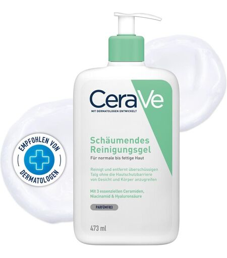 Anwendungsgebiet von CeraVe Schäumendes ReinigungsgelCeraVe Schäumendes Reinigungsgel befreit fettige Haut zuverlässig von überschüssigem Talg, Make-up und Schmutz. Zudem spendet es Feuchtigkeit und fördert den Aufbau der natürlichen Hautschutzbarriere. Wirkungsweise von CeraVe Schäumendes ReinigungsgelDie pflegende Reinigung mit feuchtigkeitsspendendem Hyaluron, drei essenziellen Ceramiden, beruhigendem Niacinamid und Glycerin reinigt effektiv und unterstützt dabei die hauteigenen Schutzmechanismen der Haut. Das mit Dermatologen entwickelte CeraVe Schäumendes Reinigungsgel zeichnet sich durch seine sanft-schäumende Formel aus, die die Haut bereits während der Reinigung durchfeuchtet, die Hautschutzbarriere stärkt und Entzündungen entgegenwirkt. Da sie nicht-komedogen und geruchsneutral ist, eignet sich das Reinigungsgel für fettige Haut. Wirkstoffe / Inhaltsstoffe / ZutatenCeraVe Schäumendes Reinigungsgel enthält: Aqua / Water • Cocamidopropyl Hydroxysultaine • Glycerin • Sodium Lauroyl Sarcosinate • Propanediol • Peg-150 Pentaerythrityl Tetrastearate • Niacinamide • Peg-6 Caprylic/Capric Glycerides • Ceramide Np • Ceramide Ap • Ceramide Eop • Carbomer • Sodium Methyl Cocoyl Taurate • Sodium Benzoate • Sodium Chloride • Sodium Lauroyl Lactylate • Sodium Hyaluronate • Cholesterol • Phenoxyethanol • Disodium Edta • Citric Acid • Tetrasodium Edta • Phytosphingosine • Xanthan Gum • EthylhexylglycerinGegenanzeigenBei bekannter Überempfindlichkeit gegenüber einen der oben genannten Inhaltsstoffe sollte dieses Produkt nicht angewendet werden.DosierungAnwendungsempfehlung von CeraVe Schäumendes Reinigungsgel: Als Teil der morgendlichen und/oder abendlichen Pflegeroutine eine kleine Menge des CeraVe Schäumendes Reinigungsgel aus dem Pumpspender entnehmen und mit etwas Wasser in den Handflächen aufschäumen. Den zarten Reinigungsschaum anschließend auf die Haut auftrag ...