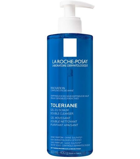 La Roche Posay TOLERIANE Gel-zu-Schaum Double Cleanser: Porentiefe Reinigung und intensive Feuchtigkeit für sehr empfindliche Haut. Double Cleansing mit einzigartigem Aminosäuren-Komplex – TOLERIANE Gel-zu-Schaum Double Cleanser Der La Roche Posay TOLERIANE Gel-zu-Schaum Double Cleanser ist ein Gesichtsreiniger, der die Haut dank Aminosäuren-Reinigungstechnologie gründlich von Unreinheiten, Make-up und überschüssigem Talg befreit. Gleichzeitig wird der Feuchtigkeitsgehalt der Haut wieder hergestellt. Das enthaltende Glycerin und die Ceramide wirken feuchtigkeitsspendend und beruhigend, sodass ein angenehm, hydratisiertes Hautgefühl entsteht. Double Cleansing mit leichter Formulierung für empfindliche Haut Der einzigartige Aminosäuren-Komplex sowie milde Tenside reinigen die Gesichtshaut gründlich, ohne den pH-Wert der Haut aus dem Gleichgewicht zu bringen. Der parfümfreie Gesichtsreiniger TOLERIANE Gel-zu-Schaum Double Cleanser eignet sich auch optimal für die tägliche Pflege empfindlicher Haut. Besondere Eigenschaften von TOLERIANE Gel-zu-Schaum Double Cleanser: Double Cleansing: 2-in1-Reinigungsformel für eine porentiefe Reinigung und intensive Feuchtigkeitsversorgung. Einzigartiger Aminosäuren-Komplex und milde Tenside entfernen überschüssigen Talg und andere Unreinheiten. TOLERIANE Gel-zu-Schaum Double Cleanser hinterlässt eine hydratisierte Haut ohne Spannungsgefühle. Niacinamid beruhigt die Haut und sorgt für eine gute Verträglichkeit auch bei sehr empfindlicher Haut. Anwendung und Pflegeroutine: Der Gesichtsreiniger TOLERIANE Gel-zu-Schaum Double Cleanser von La Roche Posay eignet sich dank seiner leichten Formulierung für die tögliche Pflegeroutine. Morgens und abends das Reinigungsgel auf die nasse Haut geben und sanft einmassieren bis ein Schaum entsteht. Anschließend die Gesichtshaut gründlich mit lauwarmen Wasser abspülen. Für eine optimale Pflegeroutine sollte anschließend eine Gesichtscreme – z. B. TOLERIANE Dermallergo Creme – angewendet werden. Zusammensetzung: INGREDIENTS: AQUA / WATER • GLYCERIN • COCO-BETAINE • PROPANEDIOL • SODIUM COCOYL GLYCINATE • PEG-120 METHYL GLUCOSE DIOLEATE • SODIUM CHLORIDE • SODIUM HYDROXIDE • CITRIC ACID • CERAMIDE NP • NIACINAMIDE • DISODIUM EDTA • CAPRYLOYL GLYCINE • CAPRYLYL GLYCOL • ACRYLATES COPOLYMER (F.I.L. D240553/1).Hersteller: 86270 La Roche-Posay, France fragen@loreal-group.com ...