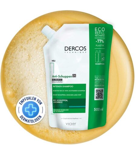 Anwendungsgebiet von Vichy Dercos Anti-Schuppen Shampoo Fett.Kopfh.nfDas Vichy Dercos Anti-Schuppen Shampoo Fett.Kopfh.nf wirkt den Ursachen der Schuppenbildung auf der Kopfhaut entgegen und eignet sich für normales bis fettiges Haar. Mit der Formulierung wird das Gleichgewicht des Kopfhautmikrobioms gefördert. Die Schuppen auf der Kopfhaut werden gezielt entfernt und einer erneuten Schuppenbildung entgegengewirkt. Wirkungsweise von Vichy Dercos Anti-Schuppen Shampoo Fett.Kopfh.nfVichy Dercos Anti-Schuppen Shampoo Fett.Kopfh.nf verfügt über eine effektive Wirkstoffkombination, die Schuppen auf der Kopfhaut langanhaltend entfernt. Das in Vichy Dercos Anti-Schuppen Shampoo Fett.Kopfh.nf enthaltene Selendisulfid beugt der Schuppenbildung vor und wirkt juckreizmildernd. Salicylsäure dient zur Entfernung der Schuppen auf Kopfhaut. Die Inhaltsstoffe Vitamin-E und Cohesyl™ helfen, die Kopfhaut ins Gleichgewicht zu bringen.Wirkstoffe / Inhaltsstoffe / ZutatenInhaltsstoffe von Vichy Dercos Anti-Schuppen Shampoo Fett.Kopfh.nf: AQUA / WATER - SODIUM LAURETH SULFATE - GLYCOL DISTEARATE - DIMETHICONE - COCO-BETAINE - GLYCERIN - CARBOMER - CI 19140 / YELLOW 5 - CITRIC ACID - MENTHOL - 2-OLEAMIDO-1,3-OCTADECANEDIOL - PPG-5-CETETH-20 - SALICYLIC ACID - SELENIUM SULFIDE - SODIUM BENZOATE - SODIUM CHLORIDE - SODIUM HYDROXIDE - TOCOPHERYL ACETATE - PARFUM / FRAGRANCE. Effektive Kombination von Dermatologischen Wirkstoffen: 1% Selendisulfid um Schuppen entgegenzuwirken 1% Salicylsäure um Schuppen auf der Kopfhaut zu entfernen GegenanzeigenBei bekannter Überempfindlichkeit gegenüber einen der oben genannten Inhaltsstoffe sollte das Produkt nicht angewendet werden.DosierungAnwendungsempfehlung von Vichy Dercos Anti-Schuppen Shampoo Fett.Kopfh.nf: Tragen Sie das Vichy Dercos Anti-Schuppen Shampoo Fett.Kopfh.nf auf die nasse Kopfhaut auf und massieren Sie es mit sanften Bewegungen ein. Bei der ersten Anwendung lassen Sie die Form ...
