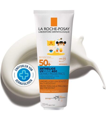 Anwendungsgebiet von Dermo-Kids Hydratisierende Milch UVMune 400 LSF50Dermo-Kids Hydratisierende Milch UVMune 400 LSF50 ist eine Sonnencreme ohne Duftstoffe für empfindliche Kinderhaut. Der innovative UV-Filter MEXORYL 400 schützt vor schädlicher UV-Strahlung. Vitamin E und Sheabutter sorgen für eine gepflegte Haut.