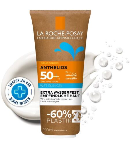 La Roche Posay Anthelios Wet Skin Gel LSF 50+ Wasserfester Sonnenschutz für empfindliche und zu Sonnenallergie neigende Haut Das La Roche Posay ANTHELIOS Wet Skin Gel LSF 50+ ist ein wasserfestes Sonnengel für den ganzen Körper. Die Sonnencreme für empfindliche und zu Sonnenallergie neigende Haut bietet einen sehr hohen Breitbandschutz gegen UV-Strahlung und Umweltbelastungen, der auch beim Auftragen auf nasser Haut erhalten bleibt. Mit seiner patentierten XL-Filtertechnologie schützt das transparente Sonnenschutzgel von La Roche Posay Gesicht und Körper zuverlässig vor UVA- und UVB-Strahlung. Die nicht-fettende und nicht-klebende Textur lässt sich leicht auf der Haut verteilen und zieht schnell und rückstandlos ein. Glycerin und Thermalwasser versorgen die Haut bis zu acht Stunden mit Feuchtigkeit. schützt die Haut von Gesicht und Körper zuverlässig vor UVA- und UVB-Strahlen Wet-Skin Technologie: wasserfest und kann direkt auf nasser Haut aufgetragen werden hoher Sonnenschutz für empfindliche Haut mit einer leichten, erfrischenden Textur Glycerin wirkt hydratisierend und speichert Feuchtigkeit bis zu acht Stunden fettet und klebt nicht und hinterlässt keine weißen Spuren Anwendung: Sollte unmittelbar vor dem Sonnenbaden auf die Haut von Gesicht und Körper großzügig aufgetragen werden. Dank der patentierten Wet Skin Technologie muss die Haut nach dem Baden nicht erst abgetrocknet werden, sondern kann direkt mit dem Sonnengel eingecremt werden. Spätestens alle zwei Stunden den Sonnenschutz großflächig erneuern, um die Schutzwirkung aufrechtzuerhalten. Nach dem Baden oder starken Schwitzen direkt erneut eincremen. Empfindliche und zu Sonnenallergie neigende Haut sollte am besten zusätzlich durch luftige Kleidung und eine Kopfbedeckung vor der Sonne geschützt werden. Zusammensetzung: AQUA / WATER / EAU • ISOPROPYL PALMITATE • ALCOHOL DENAT. • BIS-ETHYLHEXYLOXYPHENOL METHOXYPHENYL TRIAZINE • DICAPRYLYL ETHER • ETHYLHEXYL TRIAZONE • BUTYL METHOXYDIBENZOYLMETHANE • DIISOPROPYL ADIPATE • DIISOPROPYL SEBACATE • GLYCERIN • PROPANEDIOL • TRIETHANOLAMINE • PHENYLBENZIMIDAZOLE SULFONIC ACID • DIMETHICONE • TOCOPHEROL • OXIDIZED STARCH ACETATE • COPERNICIA CERIFERA CERA / CARNAUBA WAX / CIRE DE CARNAUBA • ORYZA SATIVA CERA / RICE BRAN WAX • C12-22 ALKYL ACRYLATE/HYDROXYETHYLACRYLATE COPOLYMER • ACRYLATES COPOLYMER • ACRYLATES/C10-30 ALKYL ACRYLATE CROSSPOLYMER • ACRYLATES/DIMETHICONE COPOLYMER • CAPRYLYL GLYCOL • CARRAGEENAN • DIETHYLAMINO HYDROXYBENZOYL HEXYL BENZOATE • DISODIUM PHOSPHATE • DROMETRIZOLE TRISILOXANE • HYDROXYACETOPHENONE • HYDROXYETHYLCELLULOSE • POLYSORBATE 60 • SODIUM CHLORIDE • SODIUM PHOSPHATE • TEREPHTHALYLIDENE DICAMPHOR SULFONIC ACID • TRISODIUM ETHYLENEDIAMINE DISUCCINATE • XANTHAN GUM • PARFUM / FRAGRANCE ...