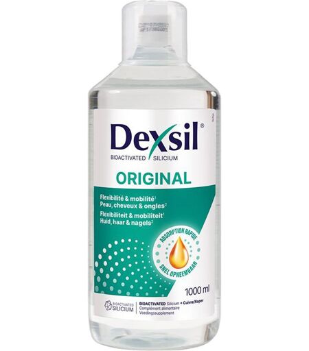 Nahrungsergänzungsmittel sind kein Ersatz für eine ausgewogene und abwechslungsreiche Ernährung und eine gesunde Lebensweise. DexSil Organic Silicium Bio-Activated mit Brennessel für Flexibilität, Mobilität, Haut, Haare & Nägel.DexSil ist ein Molekül reich an elektronen und wird vom Körper gut angenommen.ZutatenRaffiniertes Wasser, Kieselerde, große Brennessel, organisches Silizium, Aroma, Phosphorsäure (Stabilisator). Inhaltsstoffe pro 15 ml pro 45 ml Kieselerdedavon Silizium 43,8 mg13 mg 131,4 mg39 mg Große Brennessel 1,125 mg 3,375 mg GebrauchsanweisungDie Flasche einmal vor Gebrauch drehen.Nehmen Sie morgens auf den nüchternen Magen 45 ml/ Tag in der 1. Woche ein. (Starter-Effekt)Danach können Sie 15 ml /Tag im Zeitraum von 3 Monaten einnehmen.HinweiseDie täglich empfohlene Verzehrmenge sollte nicht überschritten werden.Außerhalb der Reichweite von kleinen Kindern lagern.Kontakt mit Glas vermeiden.Bei Zimmertemperatur lagern und vor Sonneneinstrahlungen schützen.Nettofüllmenge1000 ml FlüssigkeitHerstellerEytelia sprlRue de Liége 2B 6180 Courcelles ...