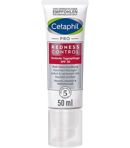 Anwendungsgebiet von Cetaphil Rednesscontrol getönte Tagespflege SPF 30Cetaphil Rednesscontrol getönte Tagespflege SPF 30 ist eine getönte Tagespflege mit Lichtschutzfaktor 30. Kaschiert Rötungen im Gesicht sofort und gleicht den Hautton aus.