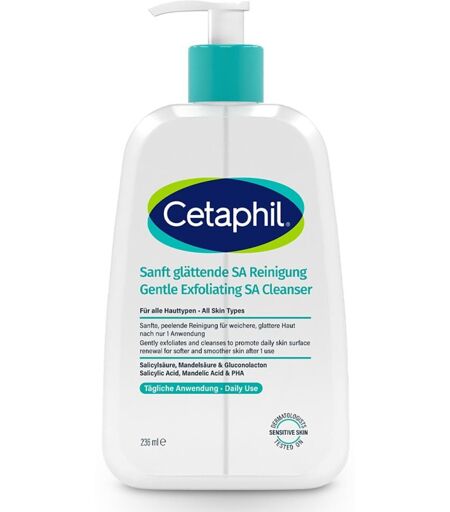 Anwendungsgebiet von Cetaphil Sanft Glättende SA Reinigung Gel Cetaphil® Sanft glättende SA Reinigung – Sanftes Peeling zur täglichen Anwendung bei empfindlicher HautDas Cetaphil Sanft Glättende SA Reinigung Gel reinigt Ihre Haut besonders sanft und wirkt zugleich leicht peelend – für ein glattes, ebenmäßiges Hautbild mit neuer Strahlkraft. Es unterstützt die natürliche Zellerneuerung, ohne dabei die Schutzbarriere Ihrer Haut zu beeinträchtigen. Bereits nach sieben Tagen zeigen sich sichtbare Verbesserungen der Hautausstrahlung und eine Reduktion von Pigmentflecken. Rückstände werden gründlich entfernt, während sich Hautton und Hautstruktur deutlich verfeinern. Schon nach der ersten Anwendung erscheint Ihr Hautbild glatter und gleichmäßiger.Der Schlüssel zu ebenmäßiger & glatter HautSo sanft, dass es täglich angewendet werden kannVerträgliche Formulierung für empfindliche HautWeichere, glattere Haut ab der ersten AnwendungGleichmäßigeres Hautbild nach 2 TagenBeschleunigt die Zellerneuerung – für strahlende Haut in 7 TagenVerbessert die Ausstrahlung der Haut und das Erscheinungsbild von Pigmentflecken in 7 TagenReduziert die Hautempfindlichkeit in 7 Tagen (-39 %)Gegen 5 Anzeichen empfindlicher HautFrei von Duftstoffen, nicht komedogenGeeignet für trockene, empfindliche Haut sowie unebene, zu Unreinheiten neigende HautIm praktischen Pumpspender Sanftes Peeling zur täglichen Anwendung – Die Cetaphil SA ReinigungEmpfindliche Haut ist weltweit weit verbreitet und betrifft ca. 70 % der Erwachsenen. Chronische Entzündungen bei empfindlicher Haut können zu ungleichmäßiger Hautstruktur und -farbe führen. Klinische Ergebnisse der neuen exfolierenden Cetaphil®-SA-Formulierungen zeigen eine hohe Verträglichkeit und eine fortschreitende Verbesserung von Hautbeschaffenheit und Hautton – für ein strahlendes und gleichmäßiges Gesamtbild bei empfindlicher Haut. Für wen ist Cetaphil Reinigungslotion geeignetDie Ceta ...