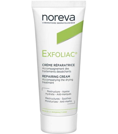 Anwendungsgebiet von Exfoliac reparierende CremeExfoliac reparierende Creme wurde speziell entwickelt, um die durch irritierende medizinische Behandlungen ausgetrocknete Haut wiederherzustellen. Sie beruhigt die Gesichtshaut und versorgt sie mit Feuchtigkeit.