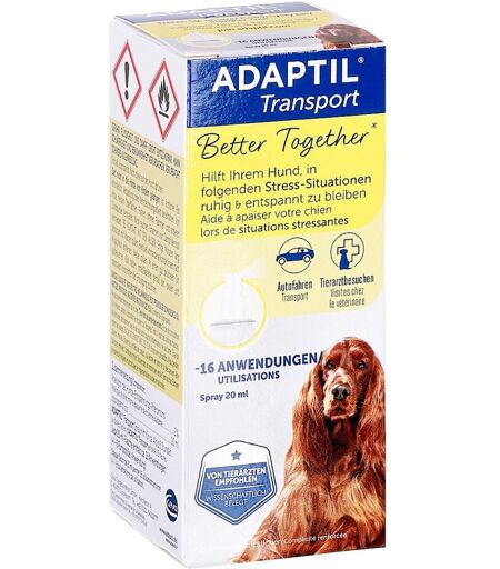 Adaptil Transport Spray für Hunde kann direkt auf Liegeplätze, Körbchen, Transportbox oder im Auto oder Zwinger gesprüht werden. Bitte stellen Sie sicher, dass sich der Hund während des Spr� ...