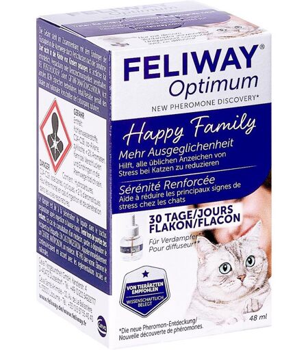 FELIWAY® Optimum enthält die fortschrittlichste Komposition von Katzen-Pheromon-Bestandteilen, die von dem FELIWAY® Forschungsteam entwickelt wurde. Diese neue Entdeckung vermittelt Wohlfühlbotschaften, die Ihren Katzen helfen, sich zuhause geborgen und entspannt zu fühlen, ihnen Sicherheit zu schenken und Harmonie zwischen Ihren Katzen sicherzustellen.