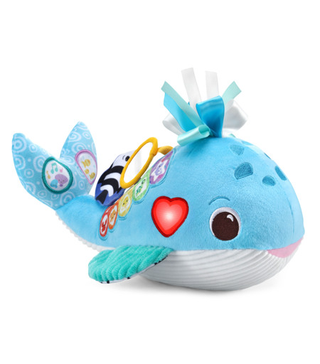 vtech Musik-Plüschwal Mit dem Musik-Plüschwal singen und kuscheln! Weicher Plüschwal mit verschiedenen bunten Elementen und Oberflächen zum Lernen und Anregen des Tastsinns. 5 regenbogenfarbene Klaviertasten spielen Geräusche sowie Lerninhalte zu Zahlen, Farben, Formen und Meerestieren ab. Die Herztaste leuchtet und löst verschiedene liebevolle Sätze aus. Zwei Tasten an der Schwanzflosse, die Musik bzw. Naturgeräusche auslösen. 87 % recycelter Plüsch; der auf Basis recycelter Plastikflaschen hergestellt ist (10 Flaschen pro Wal); dies schont die fossilen Ressourcen der Erde. Lustige Anhänger zum Entdecken: ein kleiner Fisch und ein Spiegel. Seidenbänder; Velours, Cordelemente: die verschiedenen Materialien und Stoffe regen die taktile Wahrnehmung an. Die Walflossen sind einfach zu greifen und knistern. 9 gesungene Lieder und 15 Melodien. Kindersicheres Batteriefach, Abschaltautomatik und Lautstärkeregler. Demobatterien sind enthalten. Produktmerkmale table{width:100%;}td{padding-right: 30px; padding: 0.5rem; border-bottom: 0.0625rem solid #e3e4e5;} tr:nth-child(odd) {background-color: #F2F3F4;} Produktart: Plüschtier Material: 100% Polyester Altersempfehlung: ab 3 Monaten Maße: 13,3 x 32,5 x 24,1 cm Gewicht: 0,33 kg Farbe: bunt Batterien erforderlich: ja Batterien enthalten: ja (2x AA) Lieferumfang: 1x Plüschtier; Gebrauchsanleitung, 2x AA Batterien Pflegehinweis: - Warnhinweis: - ...