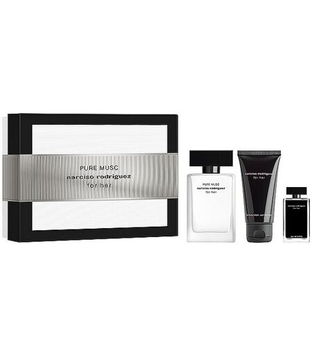 Weihnachtsgeschenkset for her PURE MUSC Eau de Parfum von Narciso Rodriguez Feiern Sie Weihnachten mit Narciso Rodriguez, wo jedes Geschenk einen Moment der Freude und Aufregung bringt. Erleben Sie die Magie des Auspackens, mit lebendigen Schleifen und Bändern, die den wahren Geist des Schenkens in sich tragen. Machen Sie ihre Feiertage unvergesslich mit dem perfekten Geschenk für Sie. Dieses Geschenkset für Damen enthält: for her PURE MUSC Eau de Parfum 50ml for her Bodylotion 50ml for her Eau de Toilette 7.5ml Das for her PURE MUSC Eau de Parfum ist eine lebhafte Hommage an den charakteristischen Moschus, die durch ein Bouquet weißer Blumen und sinnliche Cashmeran-Noten ergänzt wird. Dieser süchtig machende Duft verkörpert die Stärke und Zerbrechlichkeit der modernen Frau. Duftfamilie: Moschus-Chypre Kopfnote: Jasmin- und Orangenblüten Herznote: Moschus-Herz Basisnote: Kaschmir, Ambra, Patschuli Narciso Rodriguez verwendet 100% Pappkartons auf eine bewusstere Art und Weise. Verwenden Sie Ihre Geschenkkartons wieder oder recyceln Sie sie, um ihnen ein zweites Leben zu geben. * Die Recycling-Richtlinien können je nach Standort variieren. INCI (Inhaltsstoffe): EAU DE PARFUM: ALCOHOL, PARFUM (FRAGRANCE), AQUA (WATER), HEXAMETHYLINDANOPYRAN, BENZYL SALICYLATE, HEXADECANOLACTONE, LINALYL ACETATE, LINALOOL, POGOSTEMON CABLIN OIL, BUTYL METHOXYDIBENZOYLMETHANE, ETHYLHEXYL METHOXYCINNAMATE, HEXYL CINNAMAL, HYDROXYCITRONELLAL, CINNAMYL ALCOHOL, TRIMETHYLBENZENEPROPANOL, BENZYL ALCOHOL, BENZALDEHYDE, PINENE, ISOEUGENOL, CANANGA ODORATA OIL/EXTRACT, ACETYL CEDRENE, BHT, LIMONENE, BETA-CARYOPHYLLENE, JASMINE OIL/EXTRACT, ROSE KETONES, BENZYL BENZOATE, FARNESOL, ROSE FLOWER OIL/EXTRACT, CITRUS LIMON (LEMON) PEEL OIL, GERANYL ACETATE, CITRUS AURANTIUM PEEL OIL, TRIMETHYLCYCLOPENTENYL METHYLISOPENTENOL BODYLOTION: AQUA (WATER), BUTYLENE GLYCOL, CETEARYL ISONONANOATE, PARFUM (FRAGRANCE), COCO-CAPRYLATE/CAPRATE, GLYCERIN, PENTAERYTHRITYL TETRAETHYLHEXANOATE, XYLITOL, GLYCERYL STEARATE, PEG-100 STEARATE, CETEARYL ALCOHOL, BUTYROSPERMUM PARKII (SHEA) BUTTER, HYDROXYETHYL ACRYLATE/SODIUM ACRYLOYLDIMETHYL TAURATE COPOLYMER, HEXAMETHYLINDANOPYRAN, ISOHEXADECANE, BENZYL SALICYLATE, 1,2-HEXANEDIOL, CAPRYLYL GLYCOL, SODIUM BENZOATE, LINALOOL, HYDROXYCITRONELLAL, TETRAMETHYL ACETYLOCTAHYDRONAPHTHALENES, HEXYL CINNAMAL, LINALYL ACETATE, POGOSTEMON CABLIN OIL, POLYSORBATE 60, SODIUM GLUCONATE, ACRYLATES/C10-30 ALKYL ACRYLATE CROSSPOLYMER, SORBITAN ISOSTEARATE, GERANIOL, SODIUM METABISULFITE, SODIUM HYDROXIDE, BENZYL BENZOATE, BETA-CARYOPHYLLENE, FARNESOL, PINENE, LIMONENE EAU DE TOILETTE: ALCOHOL, PARFUM (FRAGRANCE), HEXAMETHYLINDANOPYRAN, AQUA (WATER), BENZYL SALICYLATE, HEXADECANOLACTONE, LINALYL ACETATE, POGOSTEMON CABLIN OIL, BUTYL METHOXYDIBENZOYLMETHANE, BENZYL ALCOHOL, HEXYL CINNAMAL, GERANIOL, HYDROXYCITRONELLAL, ETHYLHEXYL METHOXYCINNAMATE, LINALOOL, CITRUS AURANTIUM BERGAMIA (BERGAMOT) PEEL OIL, CINNAMYL ALCOHOL, TETRAMETHYL ACETYLOCTAHYDRONAPHTHALENES, LIMONENE,... ...
