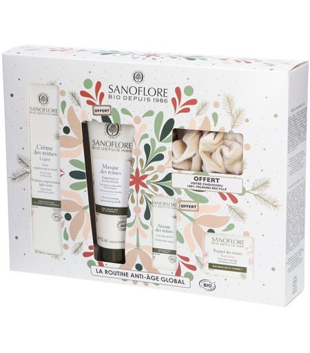 Sanoflore Globales-Anti-Aging-Set Die Crème des Reines légère ist die bio- und vegan-zertifizierte natürliche Anti-Aging-Tagespflege mit einer leichten und cremigen Textur, die regeneriert und auf die Zeichen der Hautalterung einwirkt. Die Haut ist strahlend, das Hautbild glatter. Die Haut ist sofort geschmeidiger und angenehmer. Anwendung: Le Regard des Reines: Morgens und abends durch leichtes Klopfen auf die Augenpartie auftragen. Le Sérum des Reines: Morgens und abends auf Gesicht, Hals und Dekolleté auftragen. La Crème des Reines légère: Tragen Sie eine kleine Menge der Creme auf Gesicht und Hals auf und massieren Sie sie sanft ein. Le Masque des Reines: 2 Mal pro Woche in einer dicken Schicht auf das ganze Gesicht auftragen. Inhaltsstoffe: Le Regard des Reines: CENTAUREA CYANUS FLOWER WATER * - GLYCERIN - CETEARYL ALCOHOL - THYMUS VULGARIS FLOWER/LEAF/STEM WATER - THYME - FLOWER/LEAF/STEM WATER* - ROSA DAMASCENA FLOWER WATER* - PROPANEDIOL - GLYCERYL STEARATE - LAURYL LAURATE - GLYCERYL STEARATE CITRATE - GLYCERYL STEARATE SE - ARGININE - BENZYL ALCOHOL - CAPRYLIC/CAPRIC TRIGLYCERIDE - ALBIZIA JULIBRISSIN BARK EXTRACT - CITRIC ACID - PRUNUS ARMENIACA KERNEL OIL / APRICOT KERNEL OIL* - BUTYROSPERMUM PARKII BUTTER / SHEA BUTTER* - COCO-BETAINE - MICA - CI 77891 / TITANIUM DIOXIDE - SALICYLIC ACID - PARFUM / FRAGRANCE - HYDROGENATED VEGETABLE OIL - ADENOSINE - ASCORBYL GLUCOSIDE - SODIUM PHYTATE - LINALOOL - SILICA - POLYGONUM FAGOPYRUM SEED EXTRACT / BUCKWHEAT SEED EXTRACT - LIMONENE - CI 77491 / IRON OXIDES - CITRONELLOL - SODIUM BENZOATE - GERANIOL - CITRAL - ALCOHOL - DARUTOSIDE - EUGENOL - LEONTOPODIUM ALPINUM FLOWER/LEAF EXTRACT* - POTASSIUM SORBATE - AQUA / WATER Le Sérum des Reines: AQUA / WATER - THYMUS VULGARIS FLOWER/LEAF/STEM WATER - THYME -FLOWER/LEAF/STEM WATER * - PROPANEDIOL - ALCOHOL** DENAT. - GLYCERIN - BENZYL ALCOHOL - ARGININE - SODIUM HYALURONATE - CITRIC ACID - XANTHAN GUM -ASCORBYL GLUCOSIDE - PARFUM / FRAGRANCE - LINALOOL - ADENOSINE - FAGUS SYLVATICA BUD EXTRACT * - LIMONENE - THYMUS VULGARIS FLOWER/LEAF OIL - THYME FLOWER/LEAF OIL * - CITRONELLOL - BENZOIC ACID - SORBIC ACID - GERANIOL CITRAL - LEONTOPODIUM ALPINUM FLOWER/LEAF EXTRACT * - SODIUM BENZOATE - POTASSIUM SORBATE La Crème des Reines légère: AQUA / WATER - THYMUS VULGARIS FLOWER/LEAF/STEM WATER - THYME - FLOWER/LEAF/STEM WATER* - DICAPRYLYL ETHER - PROPANEDIOL - GLYCERIN - ALCOHOL** DENAT. -POLYGLYCERYL-3 DICITRATE/STEARATE - GLYCERYL STEARATE CITRATE - ROSA DAMASCENA FLOWER WATER* - HYDROGENATED JOJOBA OIL - RHAMNOSE - BENZYL ALCOHOL - XANTHAN GUM - ARGININE - CITRIC ACID - PARFUM / FRAGRANCE - TOCOPHEROL - CI 77891 / TITANIUM DIOXIDE - MICA - SODIUM HYALURONATE - ADENOSINE - LINALOOL - LIMONENE - HELIANTHUS ANNUUS SEED OIL / SUNFLOWER SEED OIL - CITRONELLOL - SALICYLIC ACID - THYMUS VULGARIS FLOWER/LEAF OIL - THYME FLOWER/LEAF OIL* - GERANIOL - CI 77492 / IRON OXIDES - CITRAL - EUGENOL - BENZYL BENZOATE - LEONTOPODIUM ALPINUM FLOWER/LEAF EXTRACT* - SILICA... ...